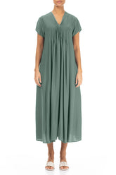 Dieses raffinierte Kleid von GRIZAS ist ein zeitloser Klassiker mit schmeichelhaftem V-Ausschnitt und zarten Abnähern vorne. Gefertigt aus weicher, leichter Bambusseide, fällt es fließend und schimmert sanft – für höchsten Tragekomfort und dezente Eleganz.