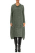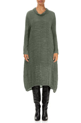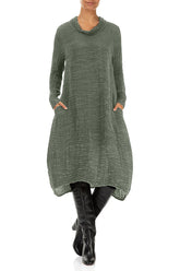 Salbeifarbenes Plissee-Seidenkleid mit Wasserfallausschnitt