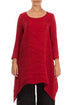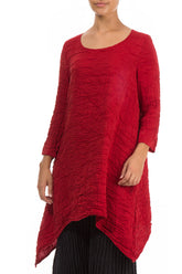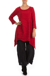 Tunika aus kirschroter, geknitterter Seide mit abgerundetem Saum
