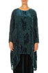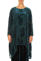 Tunika aus Seidensamt mit abgerundetem Saum und Pfauenmotiv (Devoré-Blumenmuster)